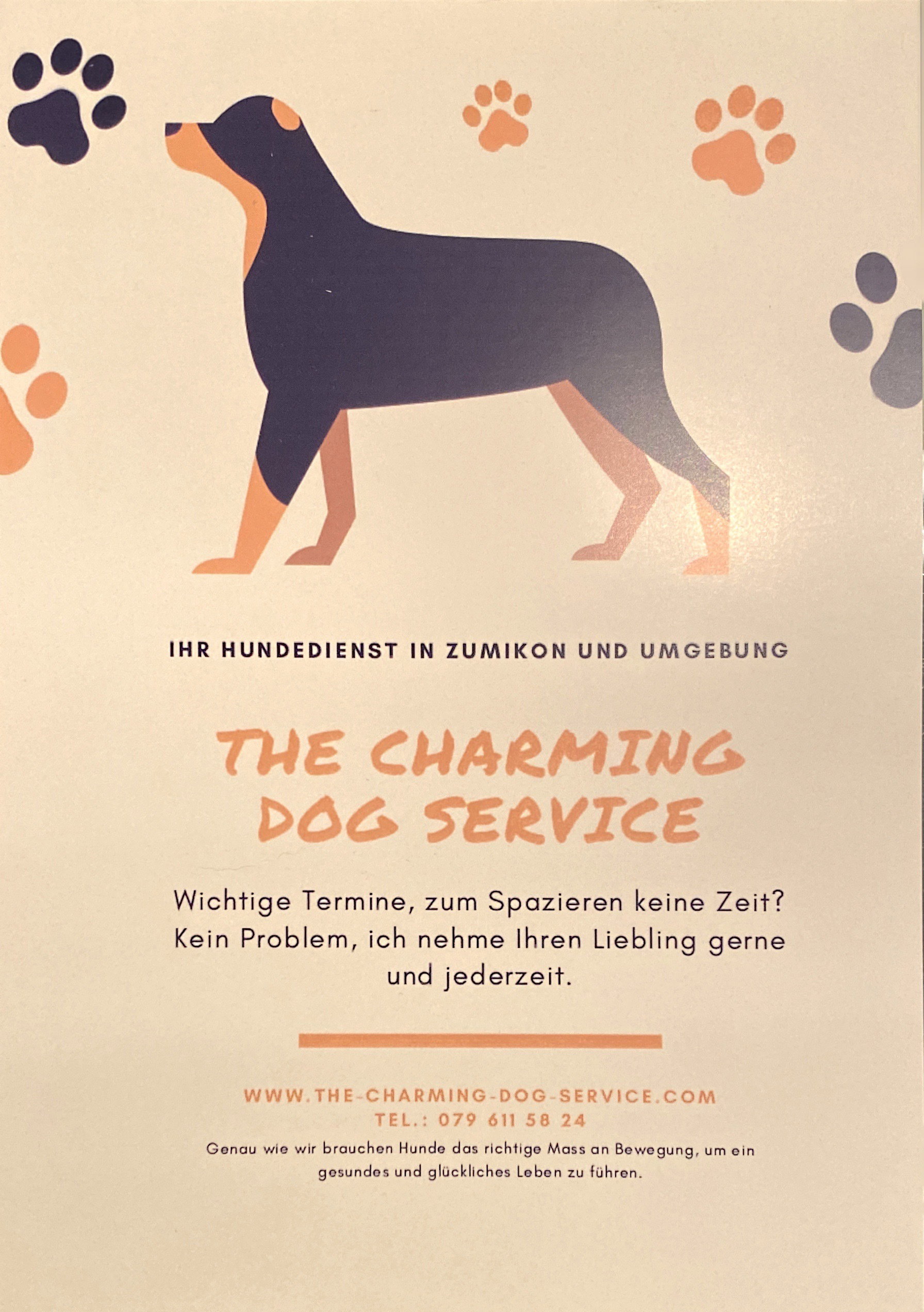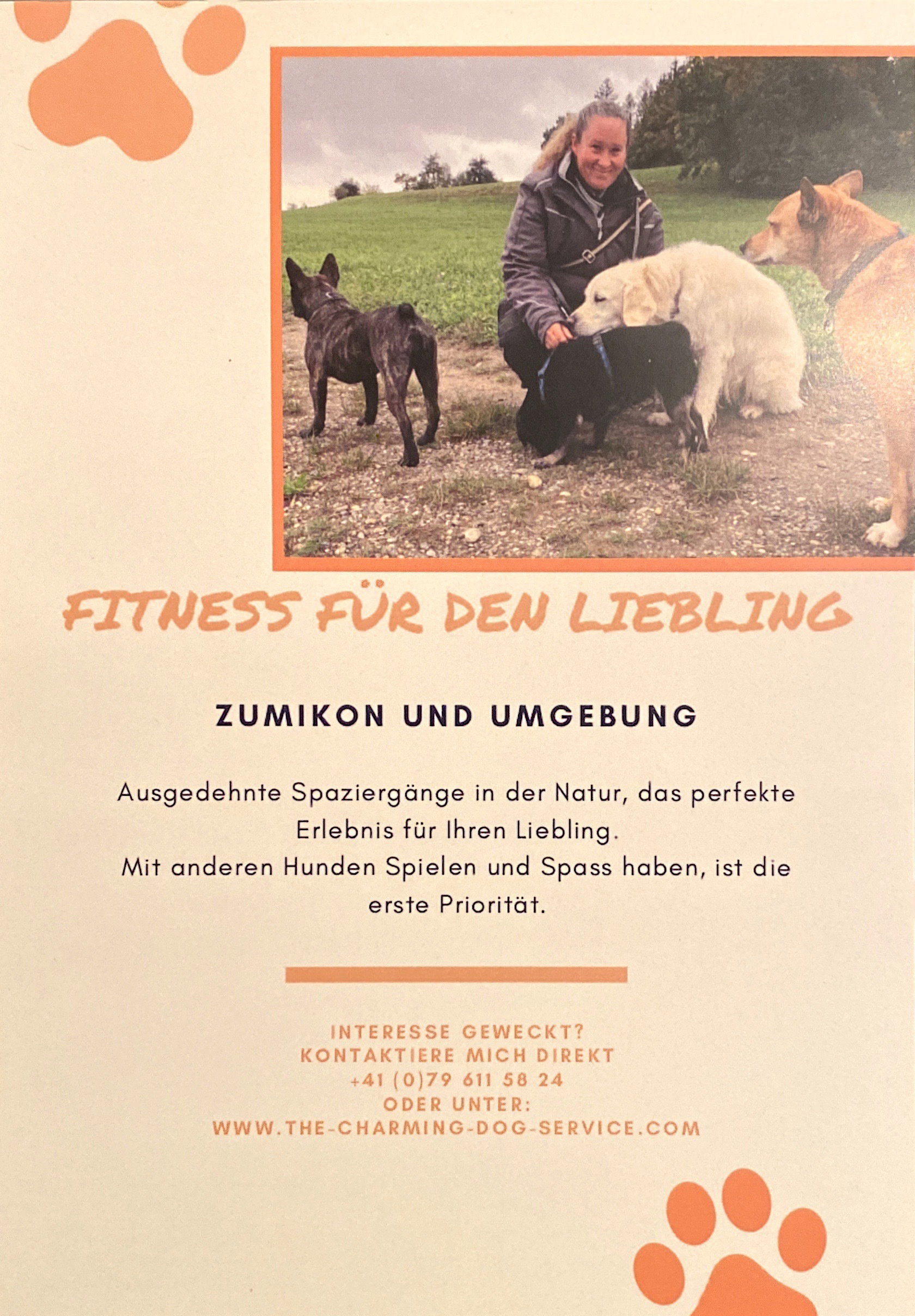 Von Montag bis Freitag biete ich jeweils vormittags und nachmittags einen ausgiebigen Spaziergang von ca. 1 1/2 Std an.